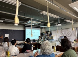 ・日時: 2024年10月12日(土)10:00~16:00 ・場所: 日本女子大学 80 年館A棟5 階被服学科物理学実験室 ・講師: Adrienne Gaskell先生(Carl Israel 先生) ・テーマ:「ビーズ組紐・ネックレス」 組紐ディスクを用いてビーズを使用したネックレスを作るプロジェクトに挑戦しました。ビーズの種類や色やデザインがいろいろあり、各個人が自分好みのとても素敵なビーズのネックレスを制作することができました。 例えば、前の部分に特殊なビーズを用いた重厚感のある素敵なネックレスや新しいタイプのデザインのビーズを用いた軽快なネックレスのなどです。そしてカール・イスラエル先生がビーズスピナーの使い方を伝授してくれました。 |